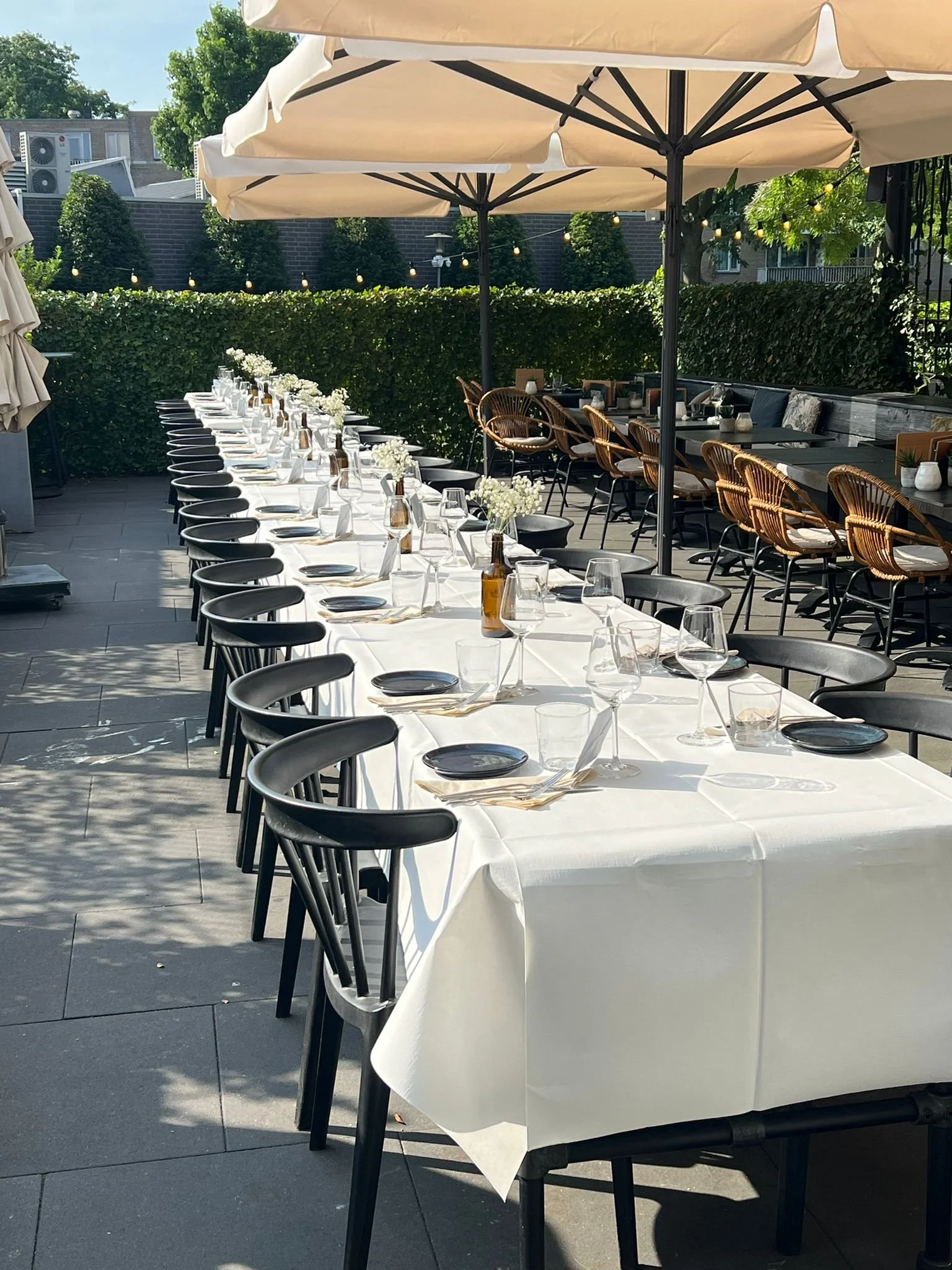 We kunnen het diner ook buiten in onze tuin organiseren! Hierbij is er ruimte voor maximaal 50 personen. Indeling hierbij is altijd in overleg, maar we denken graag mee het naar jullie wensen in te delen!